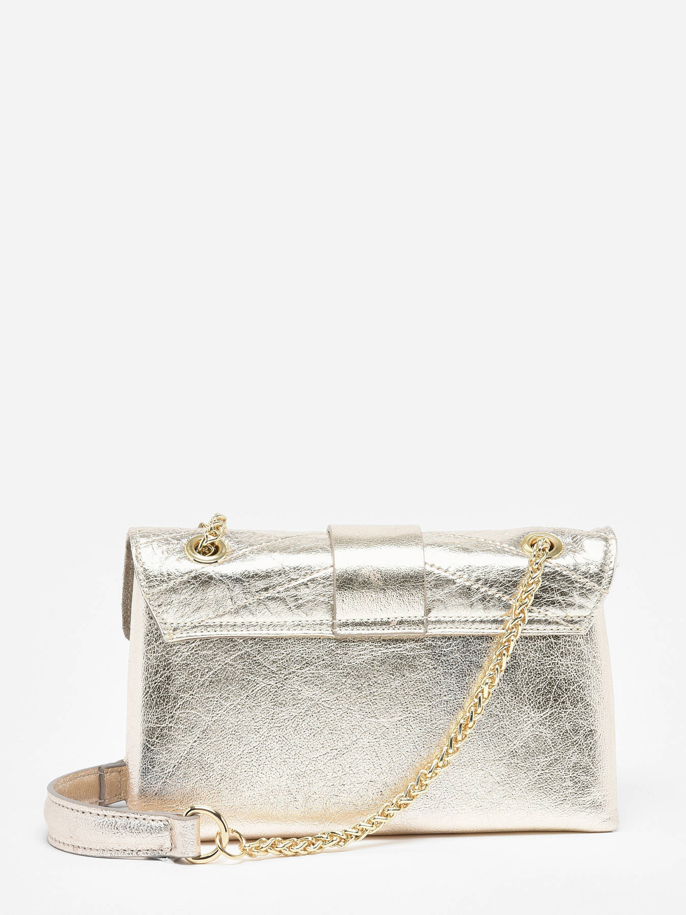 Le sac bandoulière ETRIER de la ligne JANA IRISE est disponible en deux tailles, et ici en petit format. Son cuir légèrement craquelé, avec un effet irisé, apporte une note élégante. Arborant un design esprit baguette, il est confectionné en cuir de vachette et se ferme par un rabat magnétique. Équipé d'une bandoulière en chaîne et cuir, il se porte en bandoulière ou à l'épaule. À l'intérieur, deux compartiments abritent une poche plaquée et une poche éclair, le tout doublé en coton pour une finition raffinée.