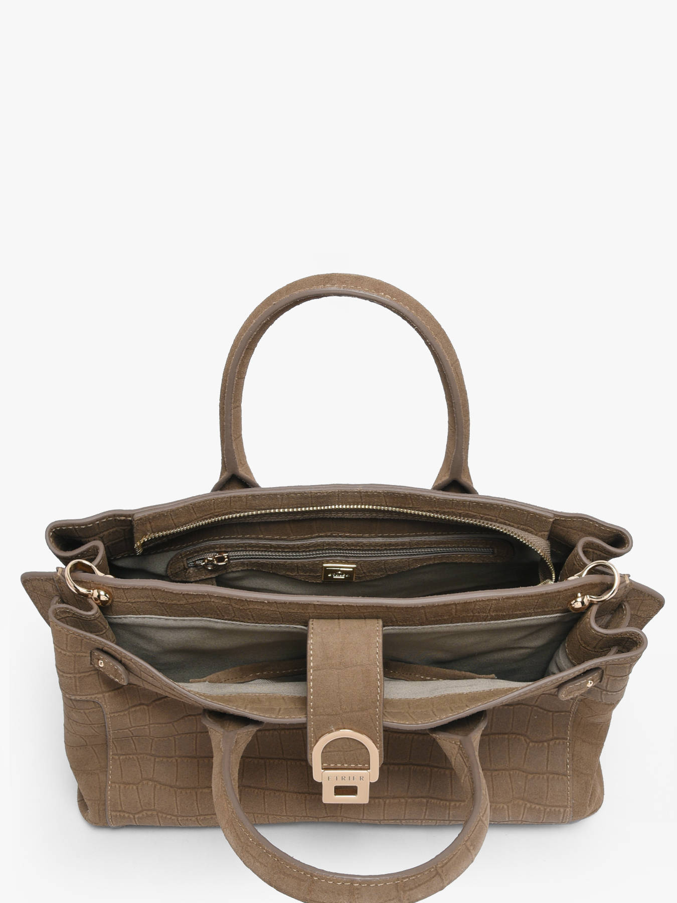 The EQUESTRE CROCO handbag by Etrier is crafted from velvety cowhide leather embossed with a crocodile pattern, offering a bold mix of textures that gives the bag a sophisticated look with a wild charm. Featuring a zipped closure, flap, and clasp, it combines security and elegance for everyday use. The handle height is 12 cm, with an adjustable and removable shoulder strap, allowing versatile wear by hand or over the shoulder. Inside, two well-designed compartments, along with two slip pockets and one zipped pocket, provide optimal organization. This model is the most spacious in the Equestre Croco line, enhanced by refined golden finishes. Presented here in size M, it is also available in size S to suit every preference.